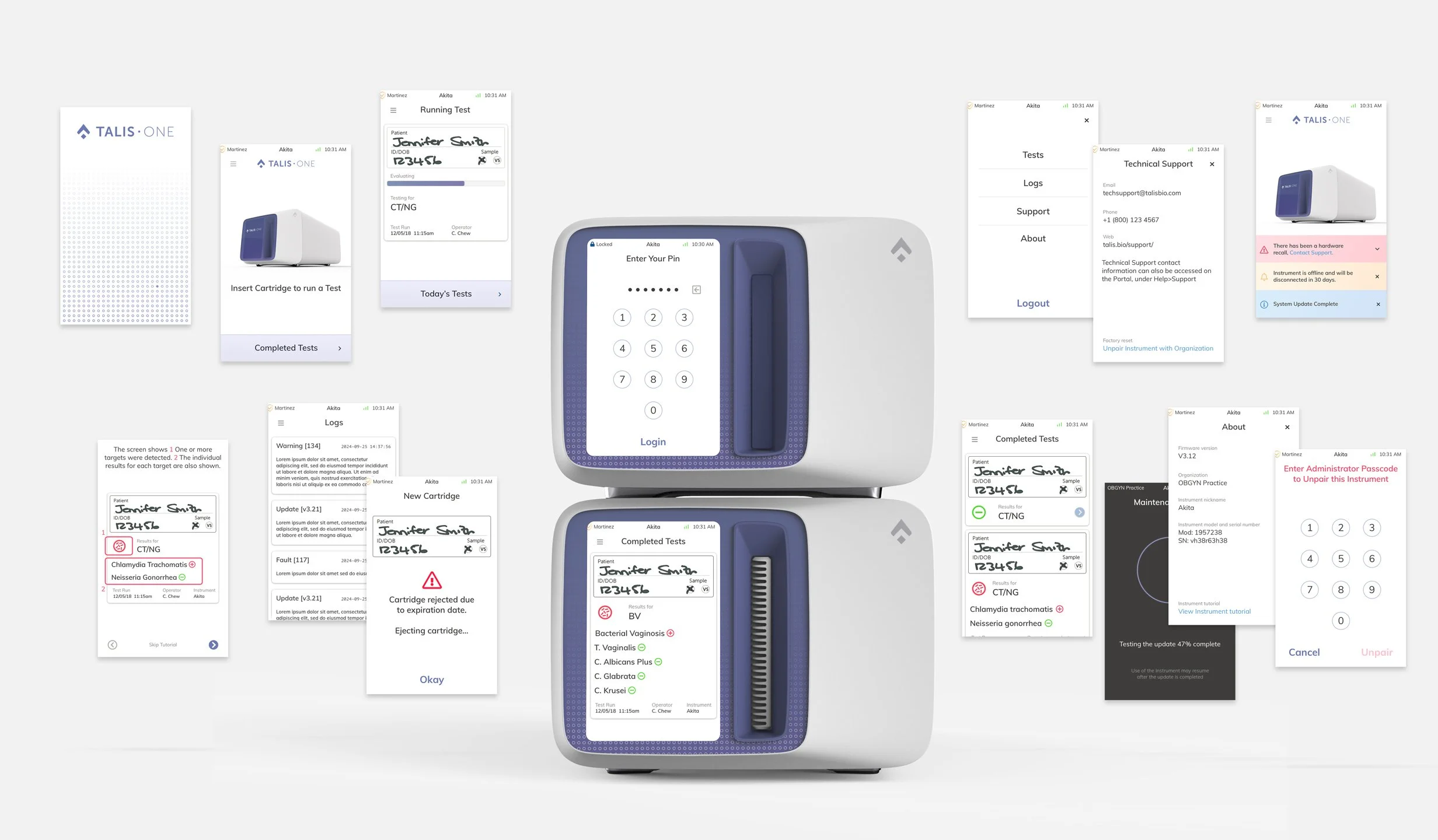 I led UX design for a Bay Area biomedical company dedicated to making point-of-care testing accessible for independent health clinics. The Talis One ecosystem empowers lab-quality tests in under 20 minutes, a process that previously took up to a week, involved clinics shipping samples to third party labs.