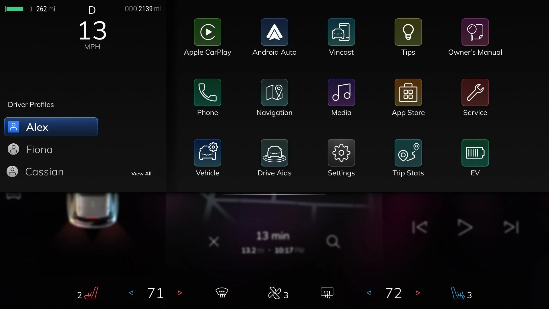 We brought a familiar mobile-like interactions to the auto market – common tasks could be performed with a few clicks or a swipe. Users navigated the system with ease, rapidly intuiting information on screen while driving, and quickly building muscle memory, showing they could access common areas of the interface like the climate or app drawers, vehicle quick controls, and media or navigation apps without having to remove their eyes from the road.