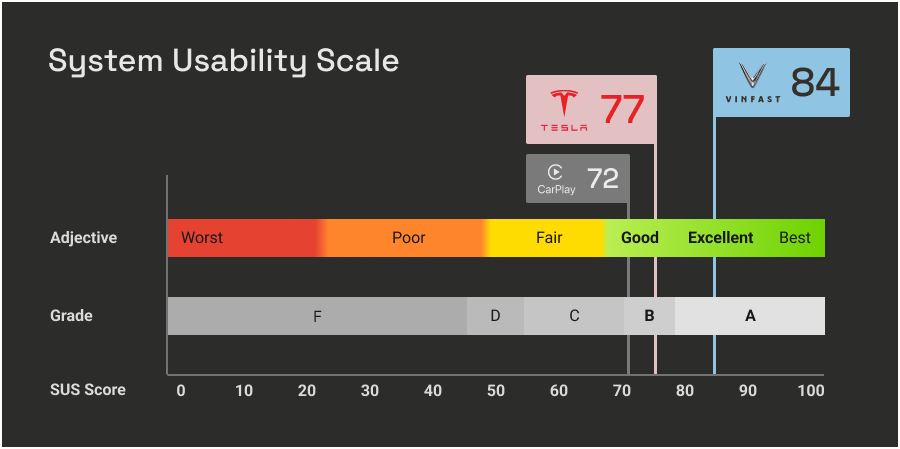 Nearing handoff, the research team ran a head-to-head comparison with a Tesla. Across tasks they found that our framework scored higher in key areas like intuitiveness, discoverability, attractiveness, novelty, and more. The group of research participants included Tesla owners and people not yet acquainted to the brand.